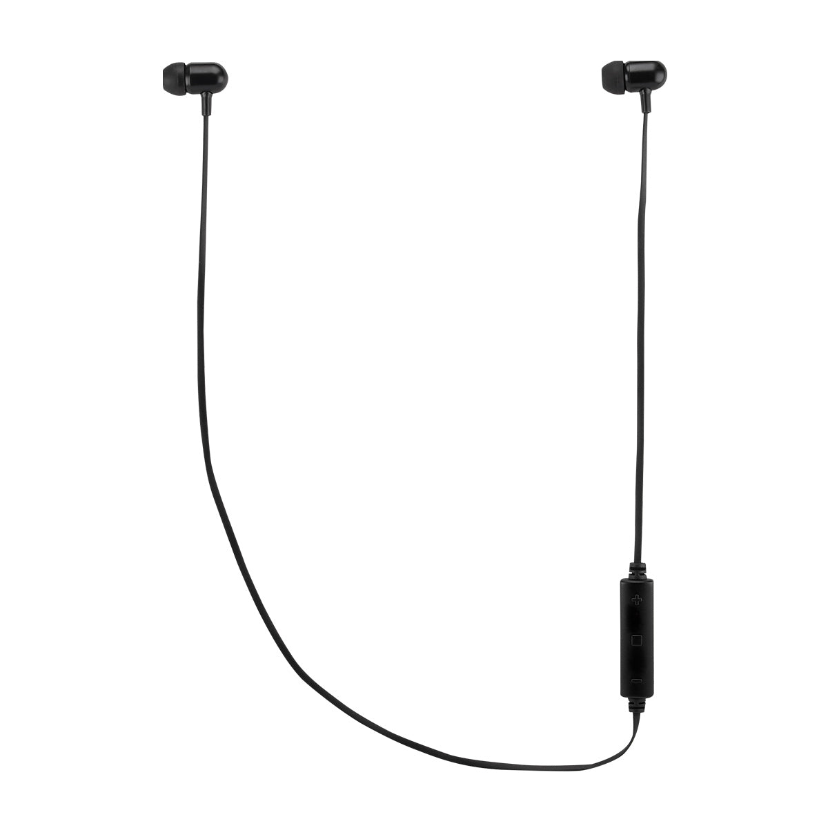 Reproducción de música hasta 2 hrs aproximadamente. Controles integrados de llamada, volumen y reproducción de audio. Incluye cable cargador USB y estuche. Material: plástico. Medidas: 8.2 x 3.4 cm. Color negro
