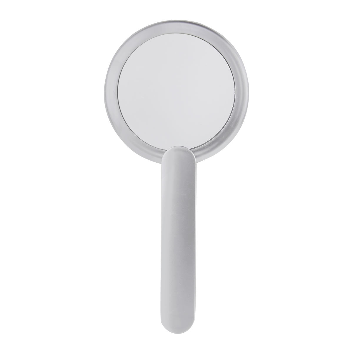 Material: plástico. Medidas: 8.5 cm. diam. espejo / 2 x 10 cm. mango. Color plata