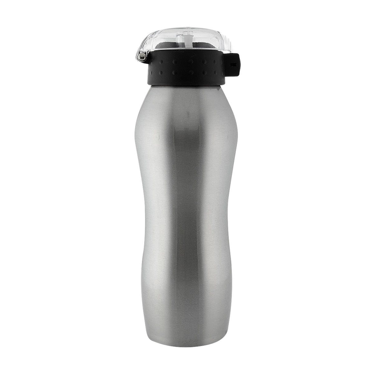 Cilindro metálico. Incluye válvula de seguridad. Material: acero inoxidable. Capacidad de 650 ml.