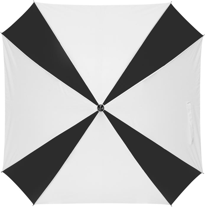 Paraguas con eje de metal, varilla de fibra de vidrio y puntas de metal. Mango de plástico. 8 gajos/paneles. Medidas: Ø83 cm. aprox.