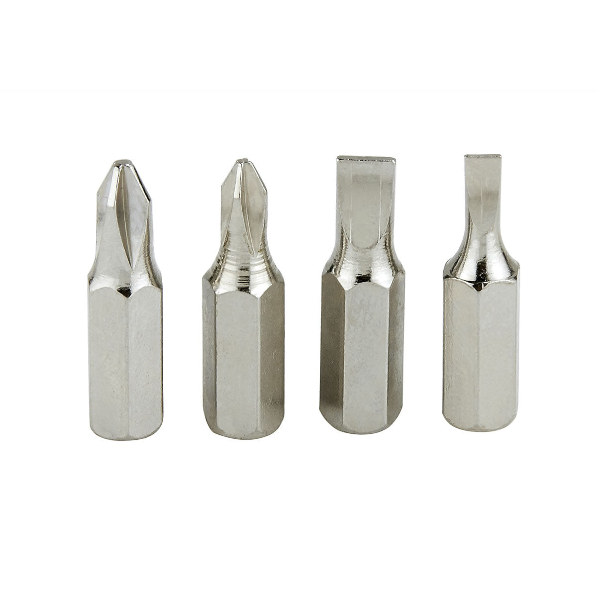 Contiene 2 puntas de cruz y 2 puntas planas de diferentes tamaños. Material: metal / plástico. Medidas: 2 x 9 cm.