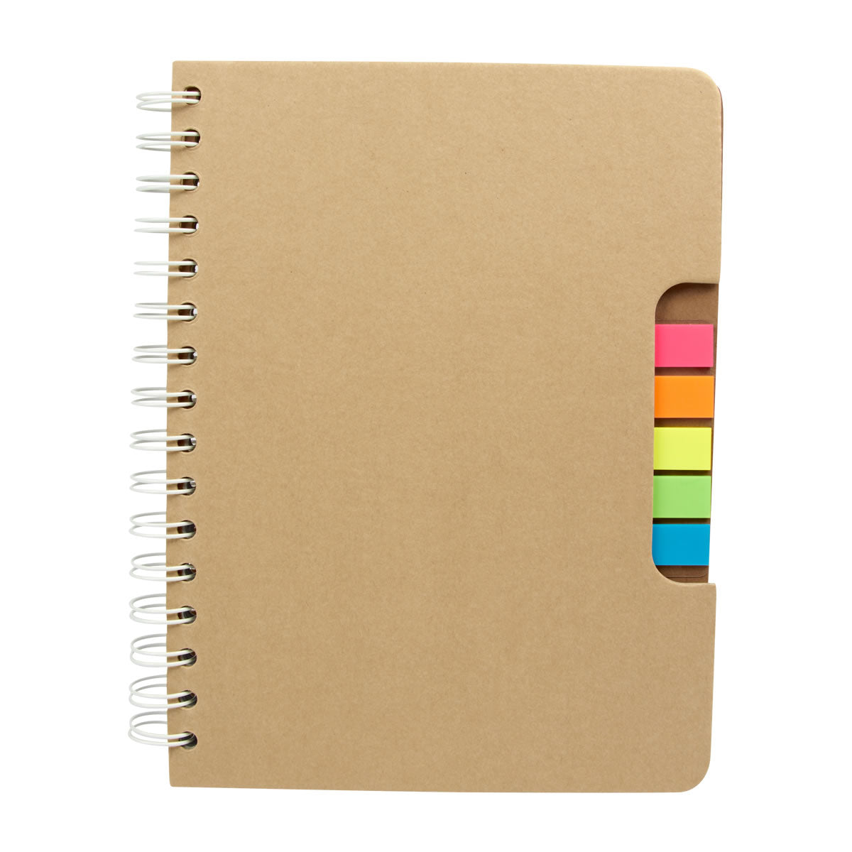 Libreta ecológica con 100 Hojas de raya. Incluye notas adheribles en 5 colores, bolígrafo ecológico y espiral metálico doble.