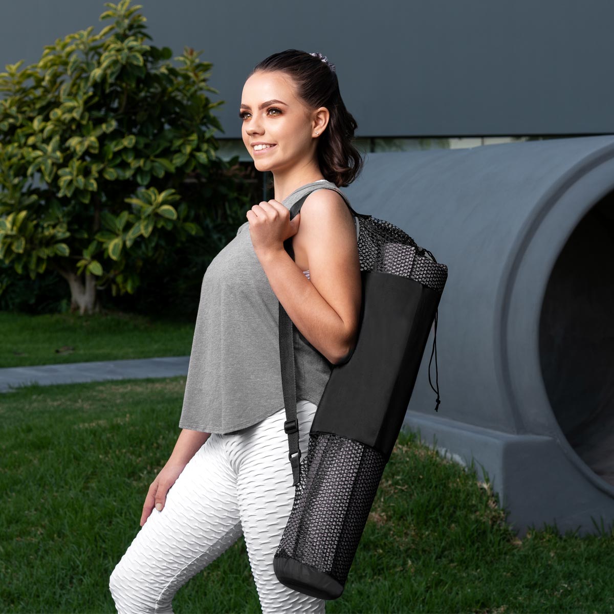 Tapete de Yoga con grosor de 5 mm. Incluye funda. Material: PVC tapete / Poliéster Funda. Medidas: 173 x 61 cm, Tapete / 70 x 13 cm. Funda. Color: Gris Tapete / Negro Funda